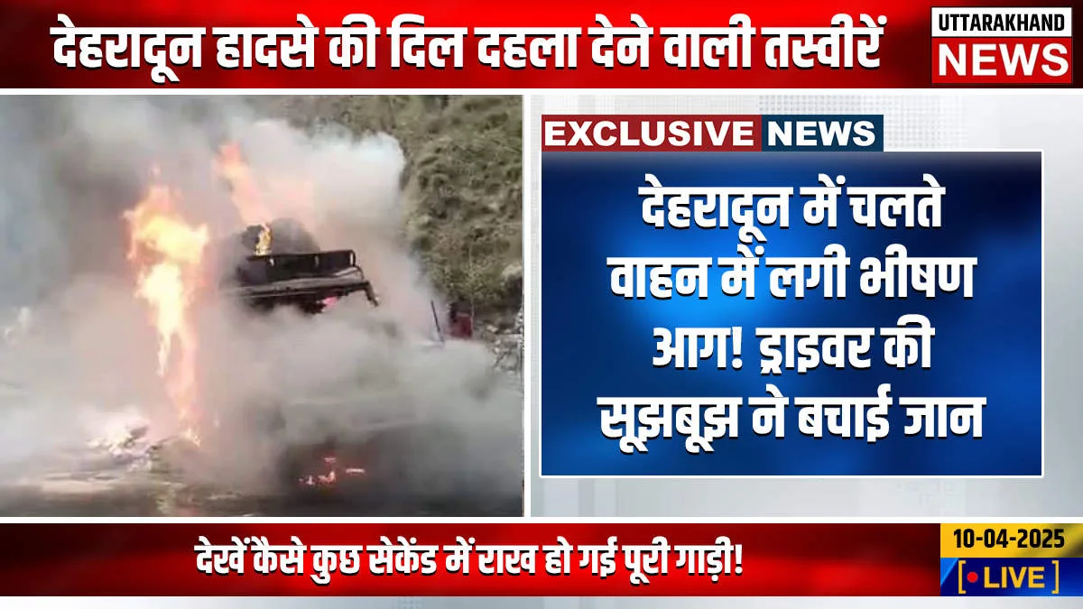 Dehradun News : देहरादून में चलते वाहन में लगी भीषण आग! ड्राइवर की सूझबूझ ने बचाई जान