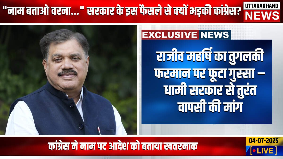Dehradun News : राजीव महर्षि का तुगलकी फरमान पर फूटा गुस्सा – धामी सरकार से तुरंत वापसी की मांग